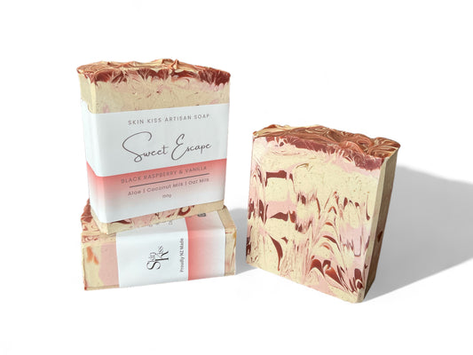Skin Kiss offers a luxurious and nourishing experience with our range of natural handmade soaps. Crafted with loving care in small batches using only the finest natural ingredients, our handmade soaps provide a gentle and soothing cleanse for your skin. Free from harsh chemicals and nasty synthetics, our soaps are perfect for sensitive skin and promote overall skin health. With the retention of glycerin, a natural moisturiser, our soaps leave your skin feeling soft, hydrated, and rejuvenated.